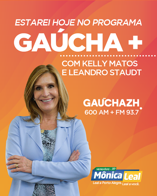 Nesta sexta-feira, às 14h30, participo do programa Gaúcha +, com Kelly Matos e Leandro Staudt.