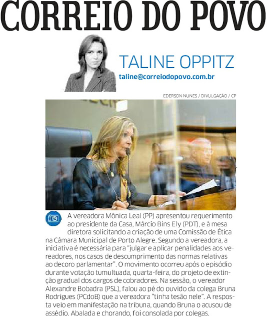Compartilho as notas das jornalistas Rosane de Oliveira, do jornal Zero Hora e da Taline Oppitz, do jornal Correio do Povo deste sábado.