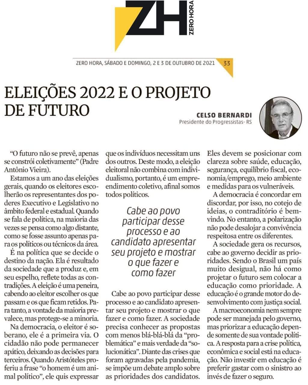 O momento é muito delicado e exige equilíbrio. Então, aproveito que esse é um atributo marcante da personalidade do presidente do Progressistas-RS, Celso Bernardi, para compartilhar o seu artigo publicado na ZH de hoje.